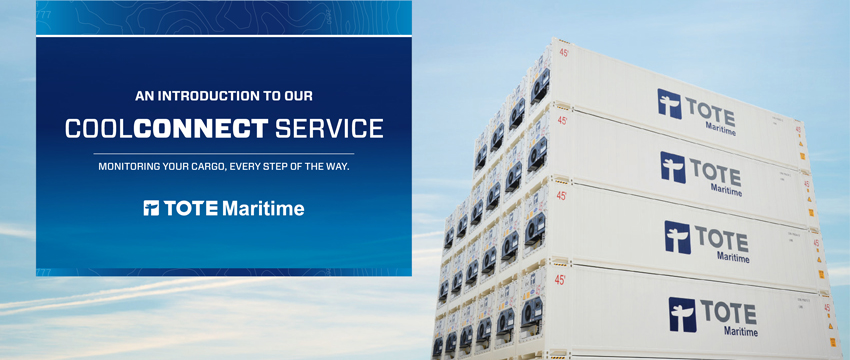 TOTE specializes in shipping temperature-controlled cargo across the sea using our CoolConnect Service. Our smart refrigerated containers (reefers) and longstanding expertise in handling both fresh and frozen cargo, makes us the best in the business for handling your refrigerated goods. CoolConnect provides us with complete visibility of your shipment making shipping refrigerated goods even more convenient and predictable for you.